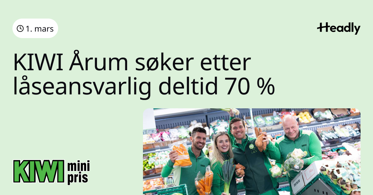KIWI Årum søker etter låseansvarlig deltid 70 %