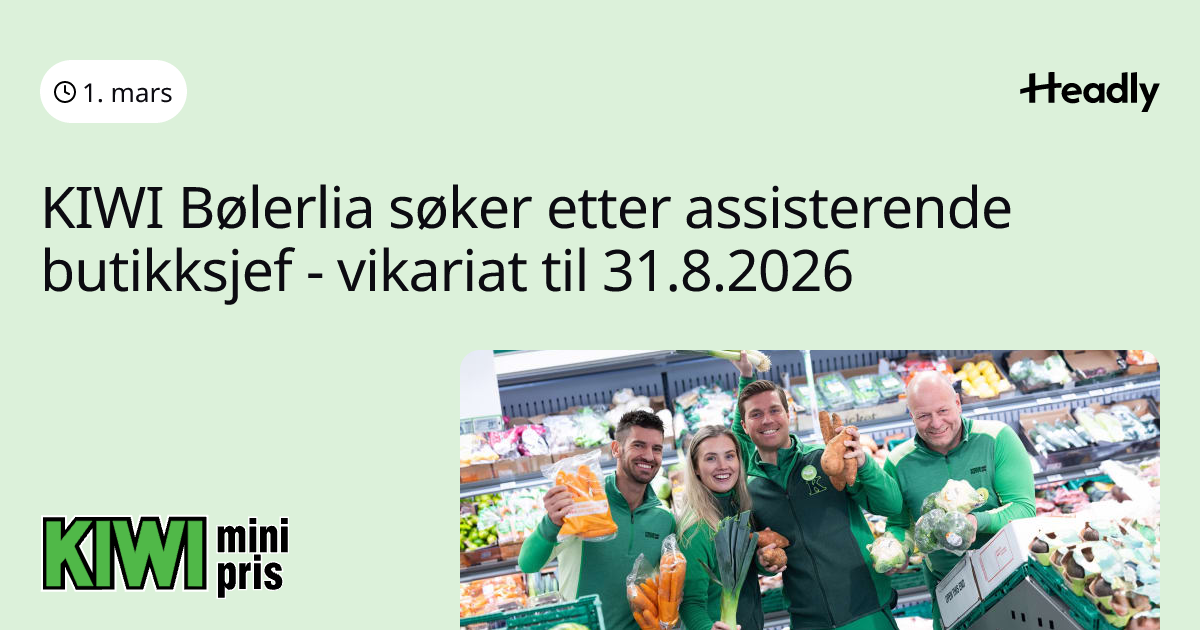 KIWI Bølerlia søker etter assisterende butikksjef - vikariat til 31.8.2026