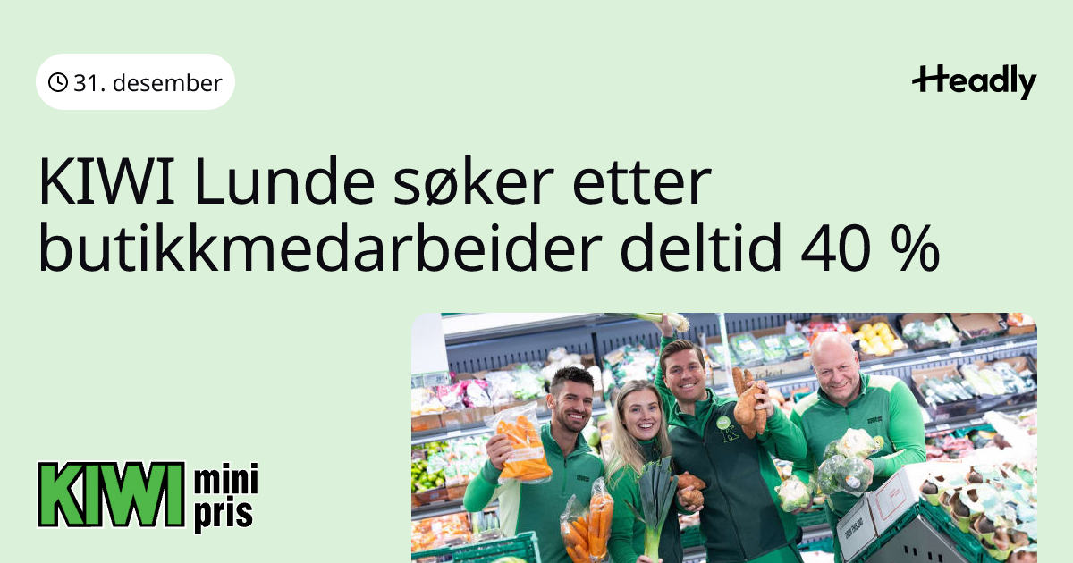 KIWI Lunde søker etter butikkmedarbeider deltid 40 %
