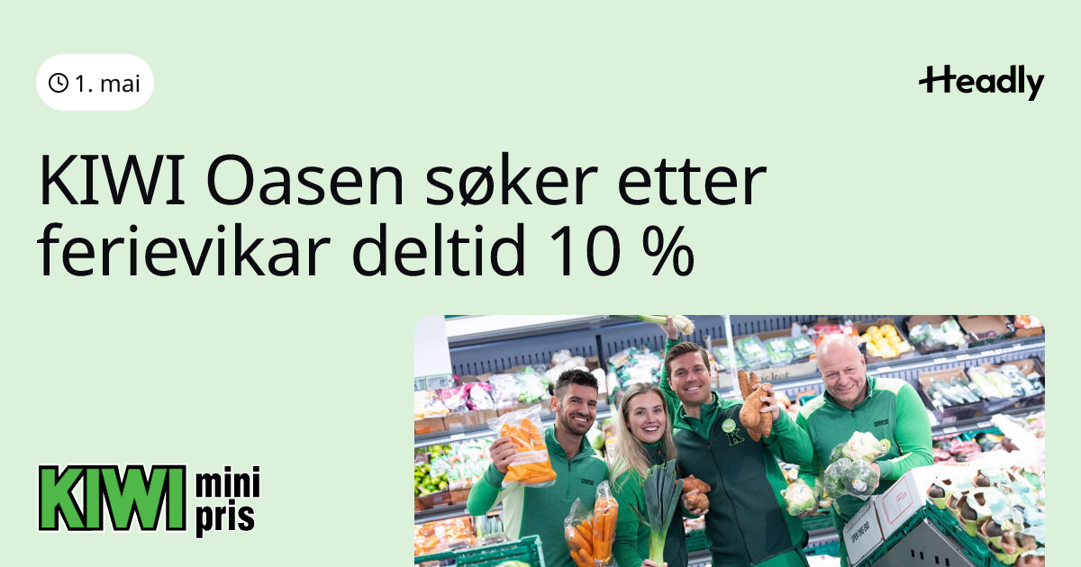 KIWI Oasen søker etter ferievikar deltid 10 %