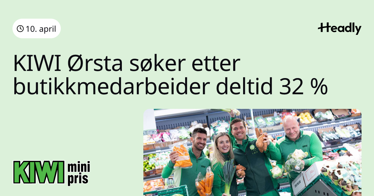 KIWI Ørsta søker etter butikkmedarbeider deltid 32 %