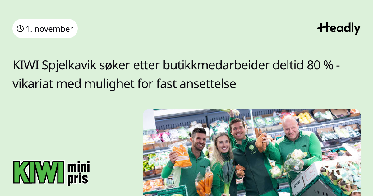 KIWI Spjelkavik søker etter butikkmedarbeider deltid 80 % - vikariat med mulighet for fast ansettelse