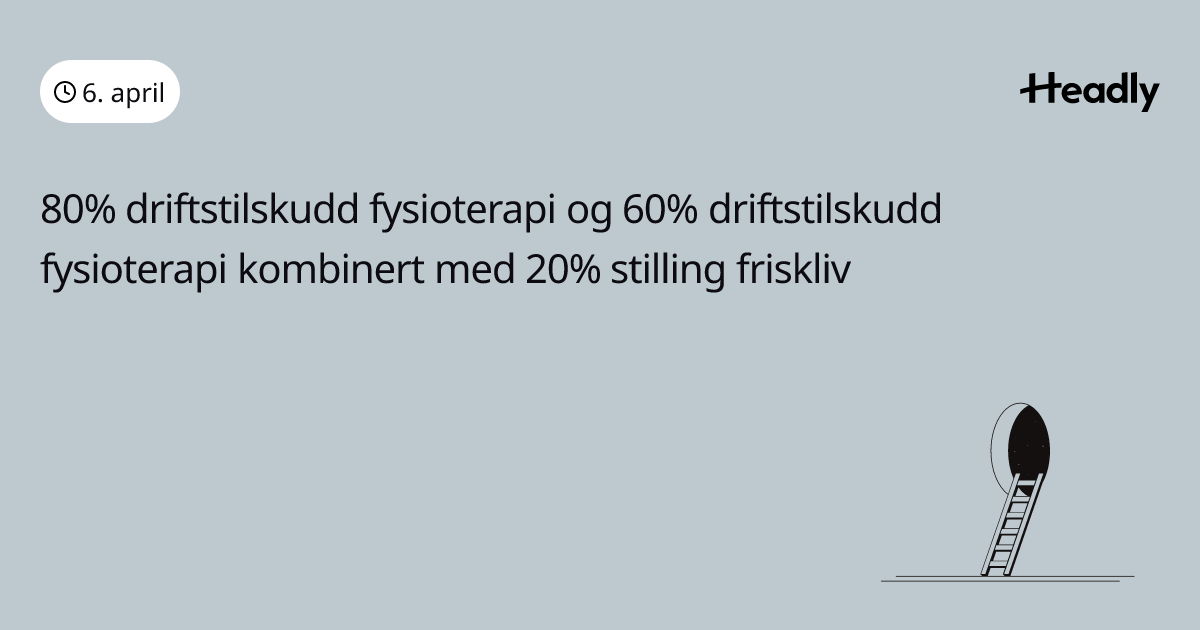 80% driftstilskudd fysioterapi og 60% driftstilskudd fysioterapi kombinert med 20% stilling friskliv