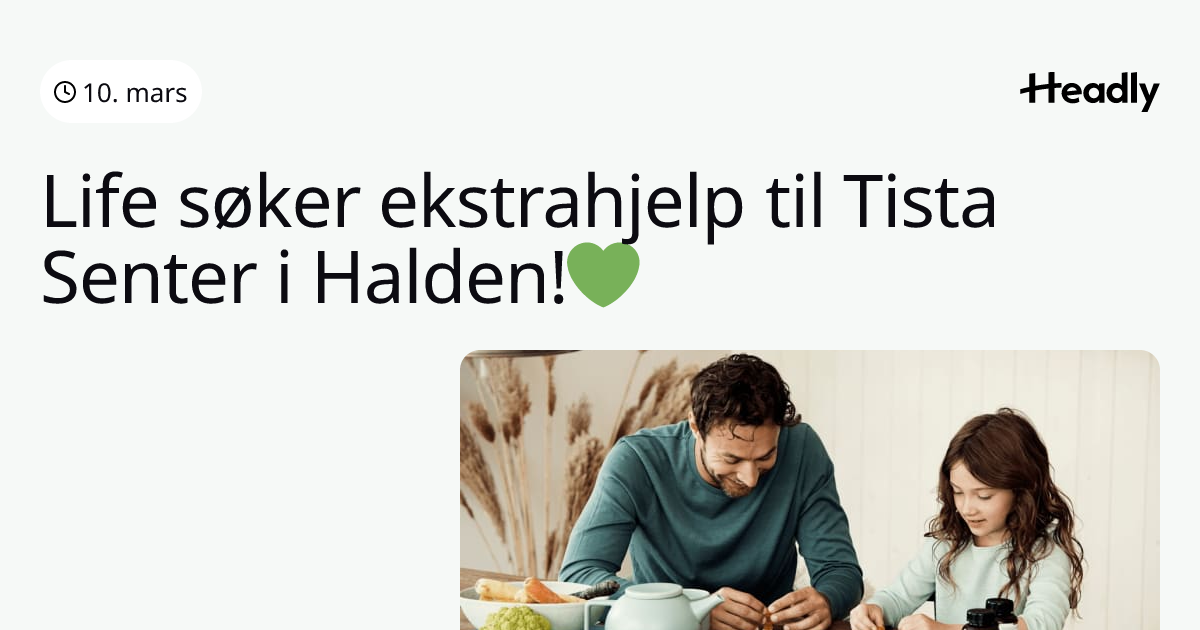 Life søker ekstrahjelp til Tista Senter i Halden!💚