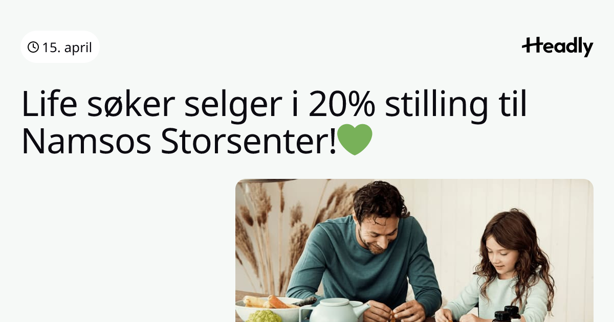 Life søker selger i 20% stilling til Namsos Storsenter!💚