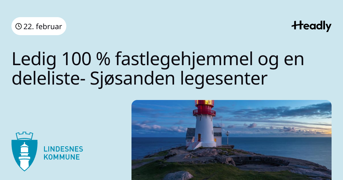 Ledig 100 % fastlegehjemmel og deleliste - Sjøsanden legesenter
