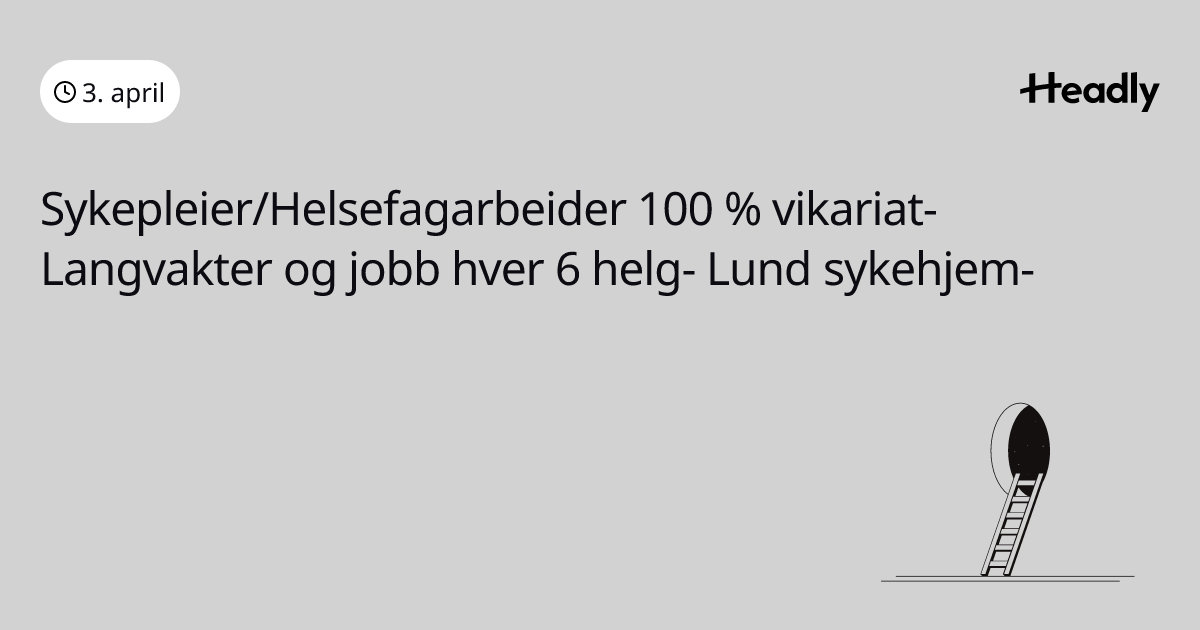 Sykepleier/Helsefagarbeider 100 % vikariat- Langvakter og jobb hver 6 helg- Lund sykehjem-