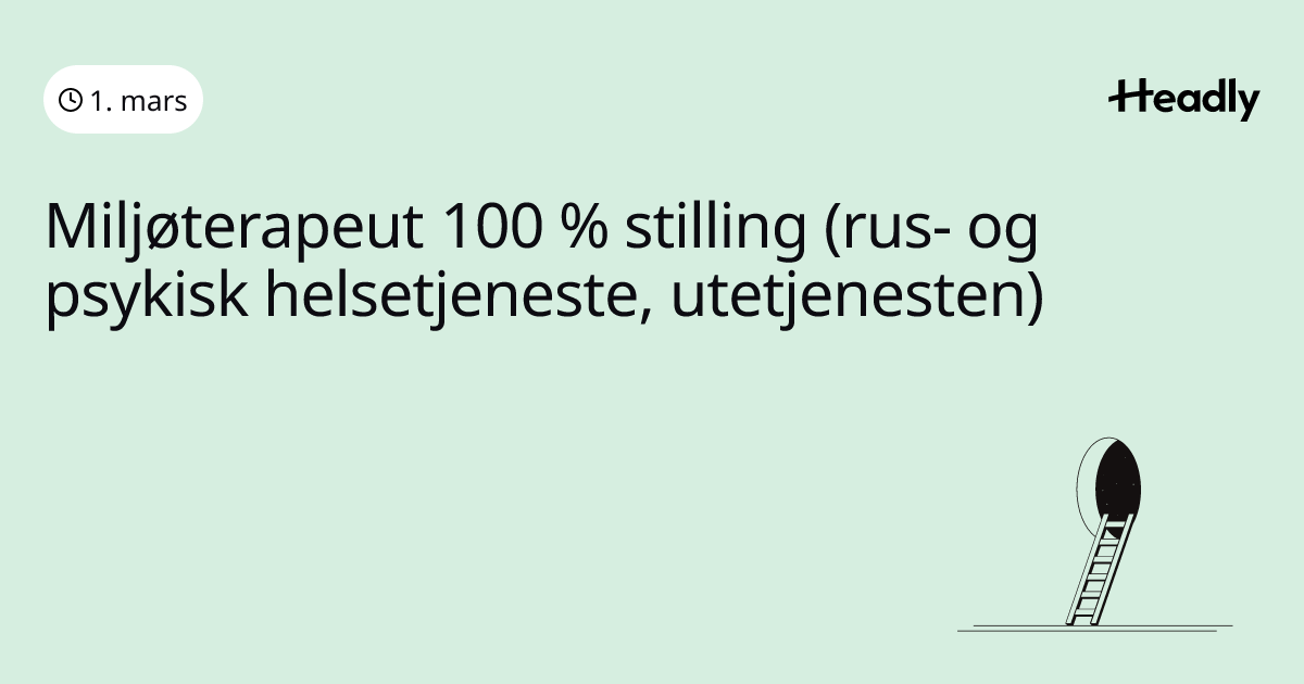 Miljøterapeut 100 % stilling (rus- og psykisk helsetjeneste, utetjenesten)