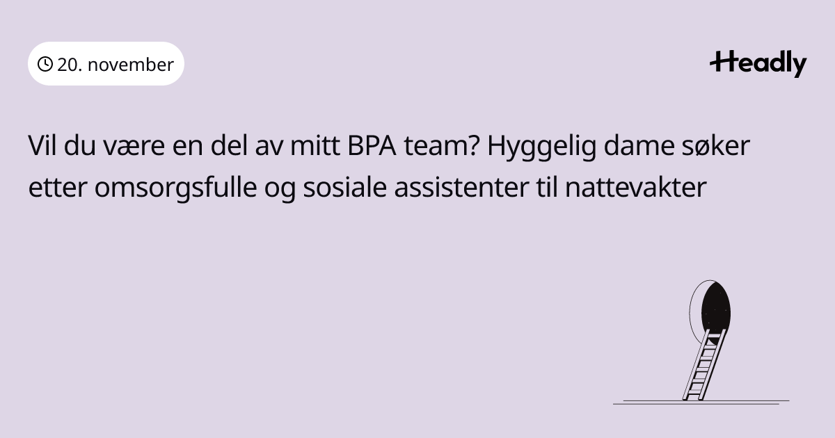 Vil du være en del av mitt BPA team? Hyggelig dame søker etter omsorgsfulle og sosiale assistenter til nattevakter