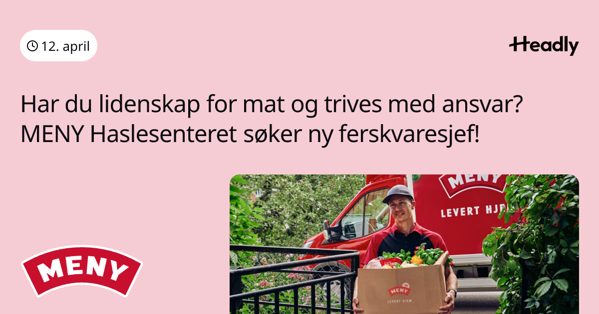 Har du lidenskap for mat og trives med ansvar? MENY Haslesenteret søker ny ferskvaresjef!