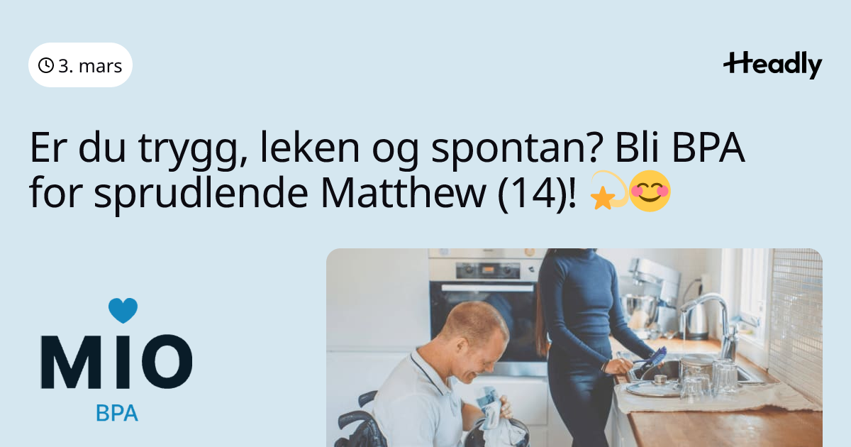 Er du trygg, leken og spontan? Bli BPA for sprudlende Matthew (14)! đ«đ