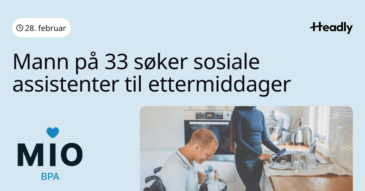 Mann på 33 søker sosiale assistenter til ettermiddager