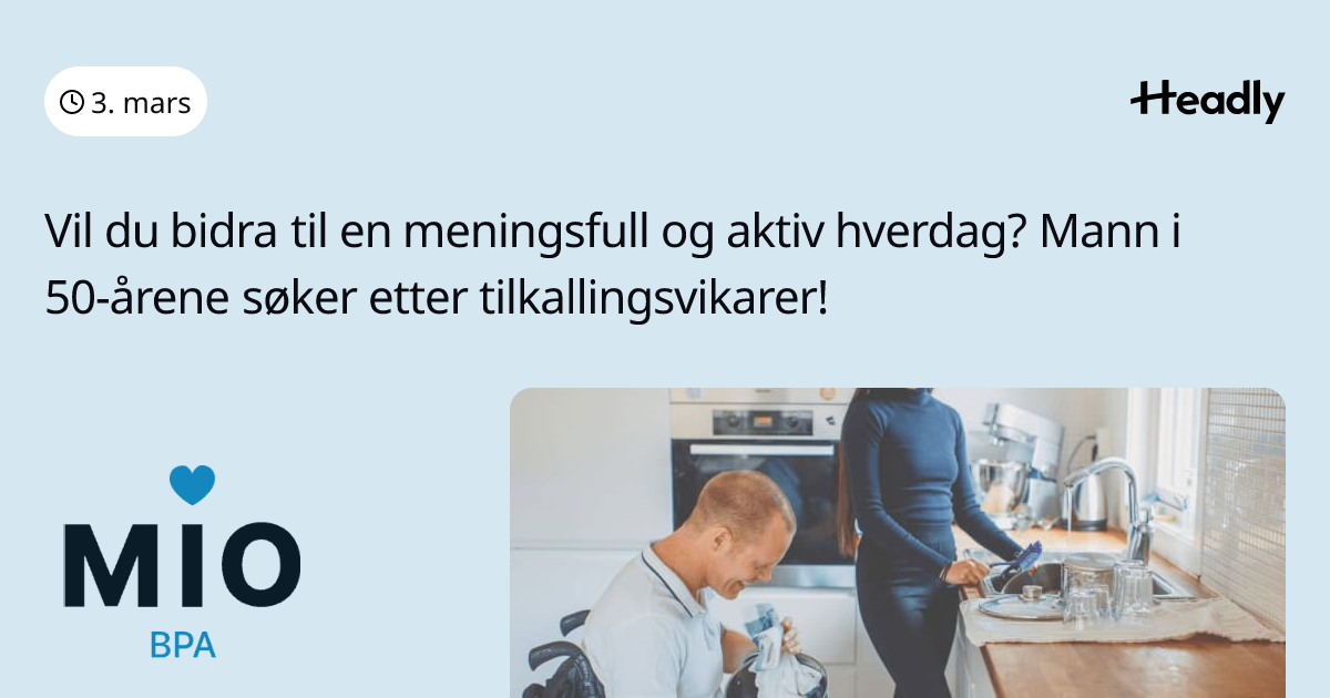 Vil du bidra til en meningsfull og aktiv hverdag? Mann i 50-årene søker etter tilkallingsvikarer!