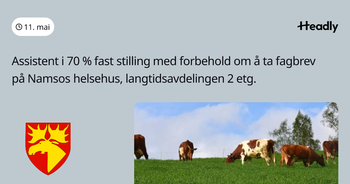 Assistent i 70 % fast stilling med forbehold om å ta fagbrev på Namsos helsehus, langtidsavdelingen 2 etg.