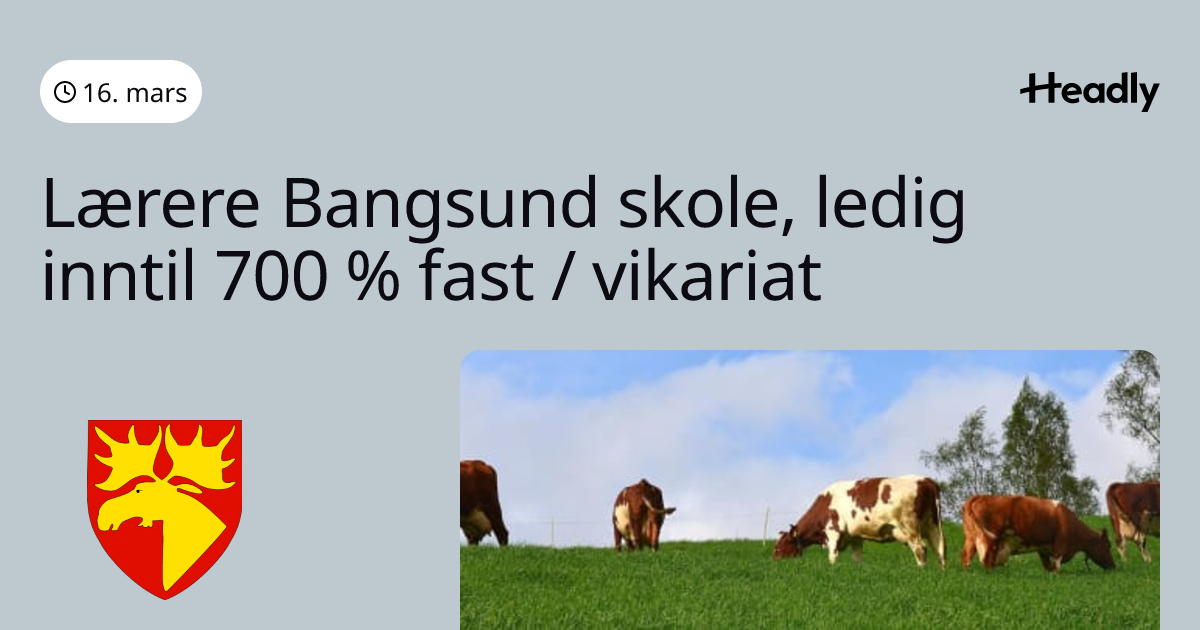 Lærere Bangsund skole, ledig inntil 700 % fast / vikariat
