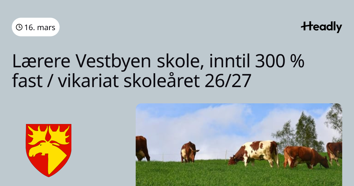 Lærere Vestbyen skole, inntil 300 % fast / vikariat skoleåret 26/27