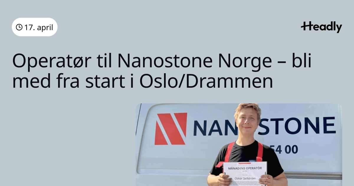 Operatør til Nanostone Norge – bli med fra start i Oslo/Drammen