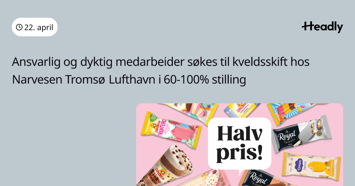Ansvarlig og dyktig medarbeider søkes til kveldsskift hos Narvesen Tromsø Lufthavn i 60-100% stilling