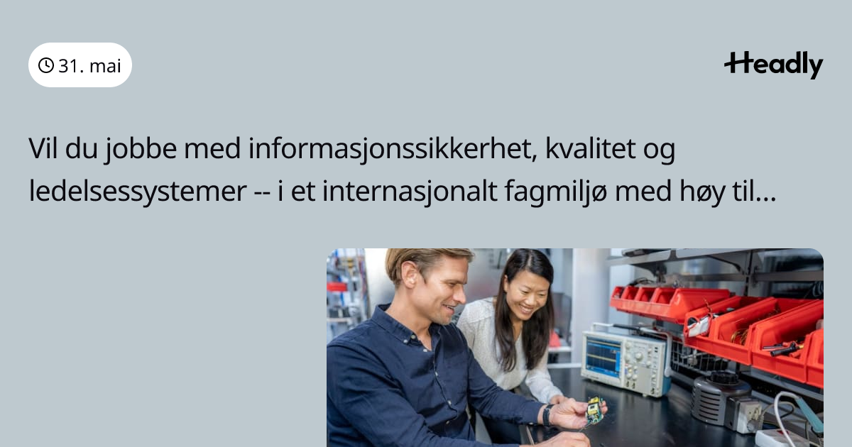 Vil du jobbe med informasjonssikkerhet, kvalitet og ledelsessystemer -- i et internasjonalt fagmiljø med høy tillit?