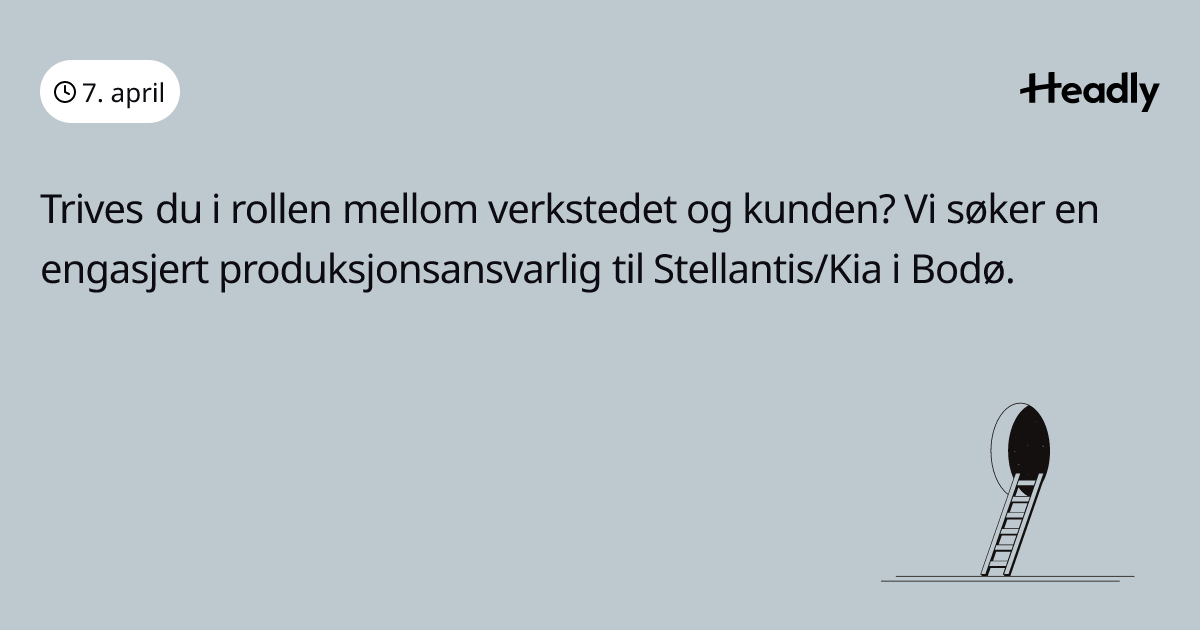 Trives du i rollen mellom verkstedet og kunden? Vi søker en engasjert produksjonsansvarlig til Stellantis/Kia i Bodø.