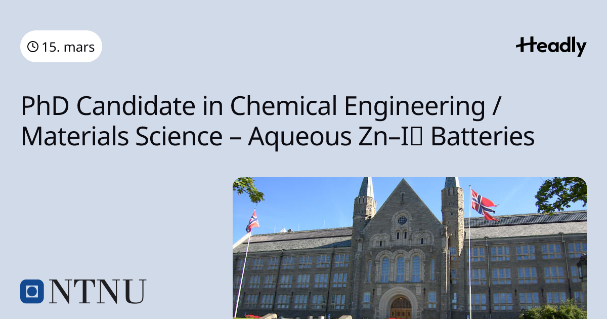 PhD Candidate in Chemical Engineering / Materials Science – Aqueous Zn–I₂ Batteries