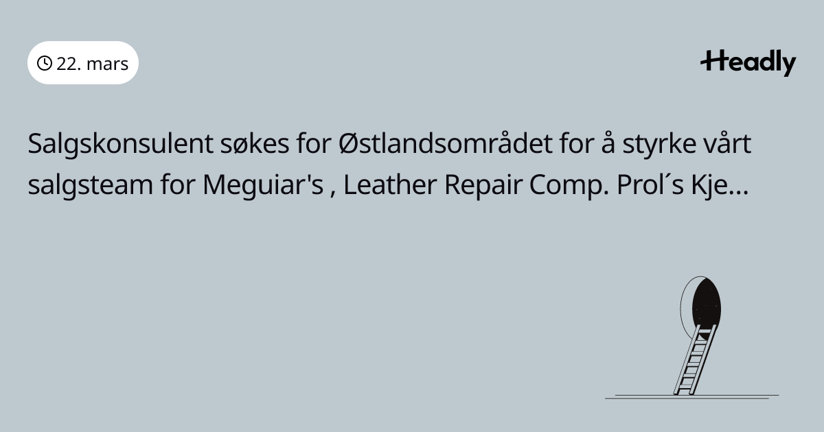 Salgskonsulent søkes for Østlandsområdet for å styrke vårt salgsteam for Meguiar's , Leather Repair Comp. Prol´s Kjemi