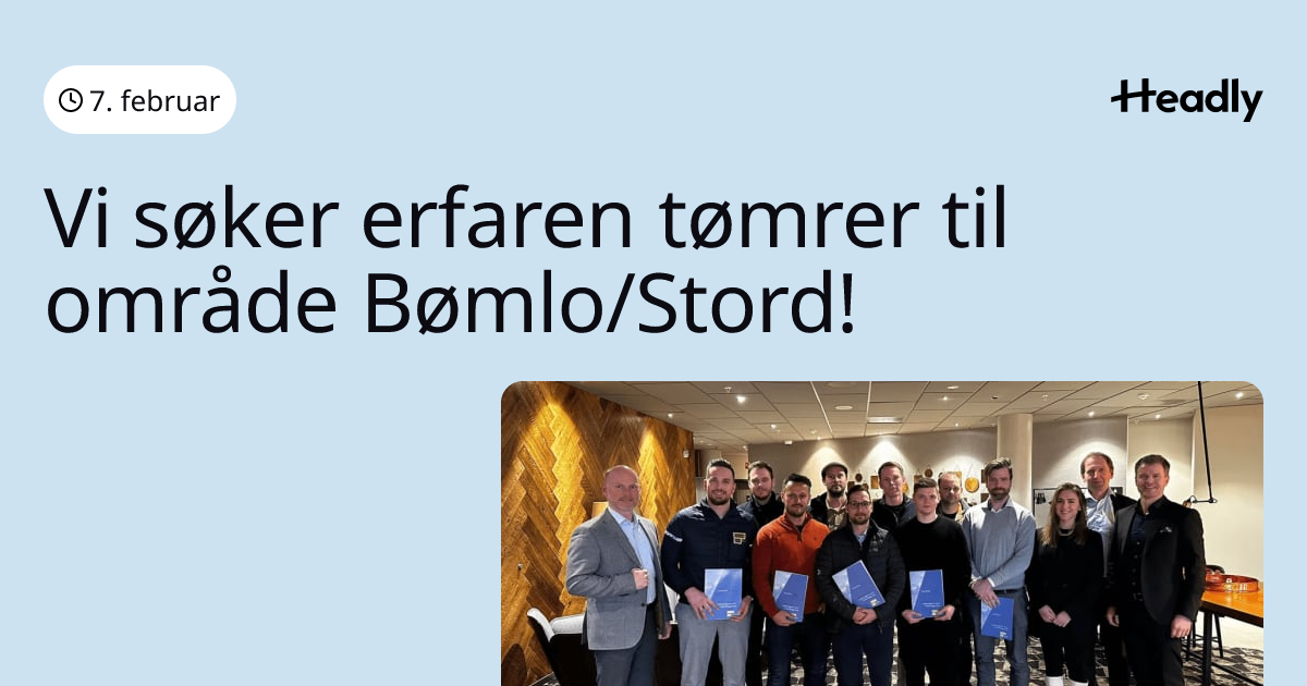 Vi søker erfaren tømrer til område Bømlo/Stord!