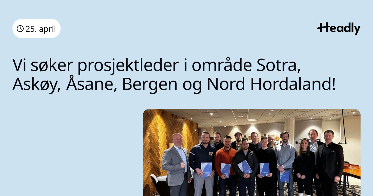Vi søker prosjektleder i område Sotra, Askøy, Åsane, Bergen og Nord Hordaland!