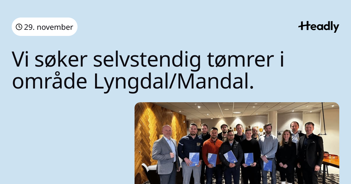 Vi søker selvstendig tømrer i område Lyngdal/Mandal.