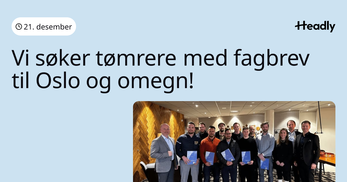 Vi søker tømrere med fagbrev til Oslo og omegn!