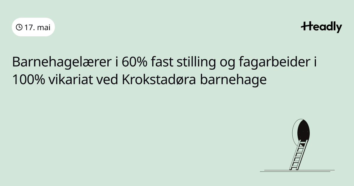 Barnehagelærer i 60 % fast stilling og fagarbeider i 100 % vikariat ved Krokstadøra barnehage