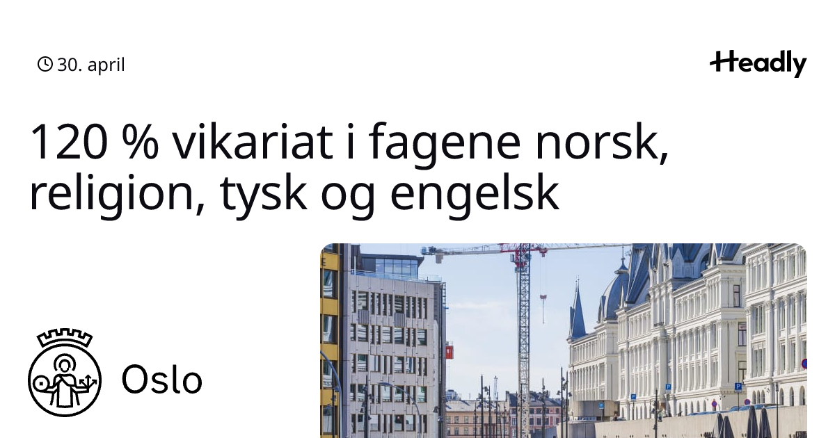120 % vikariat i fagene norsk, religion, tysk og engelsk