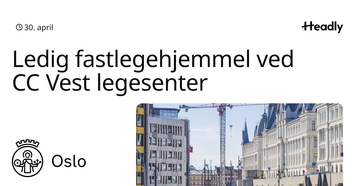 Ledig fastlegehjemmel ved CC Vest legesenter