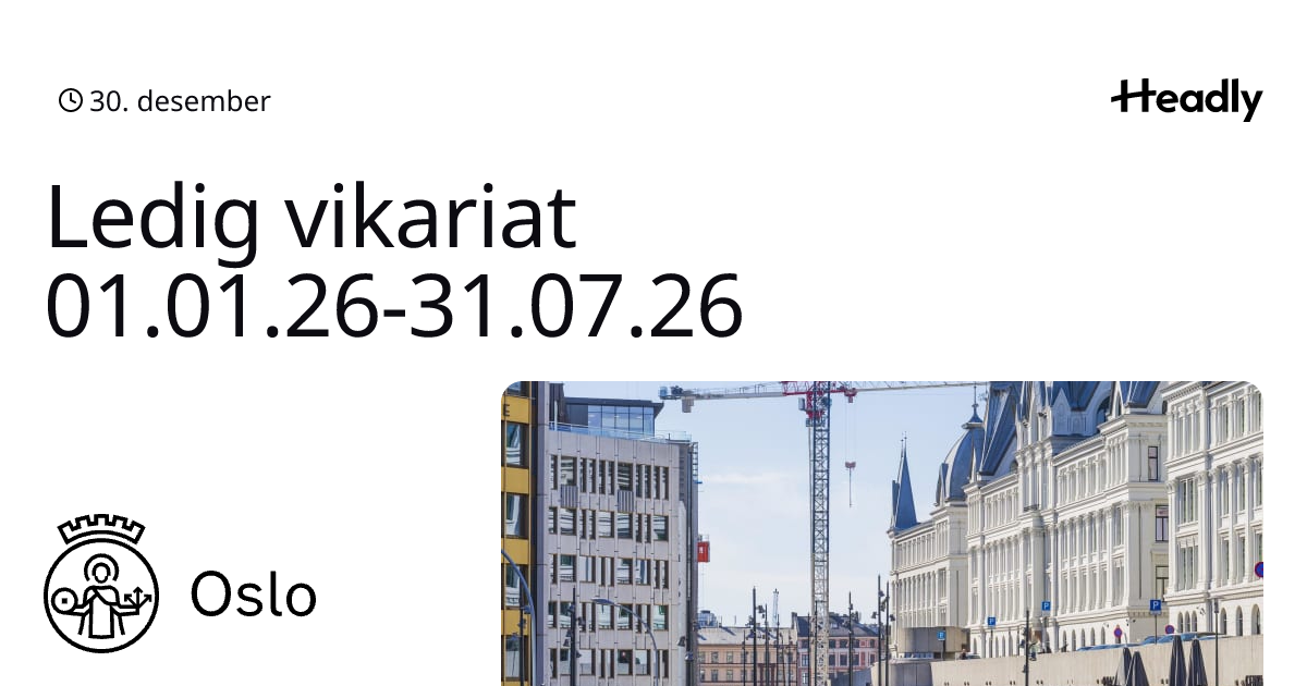 Ledig vikariat 01.01.26-31.07.26