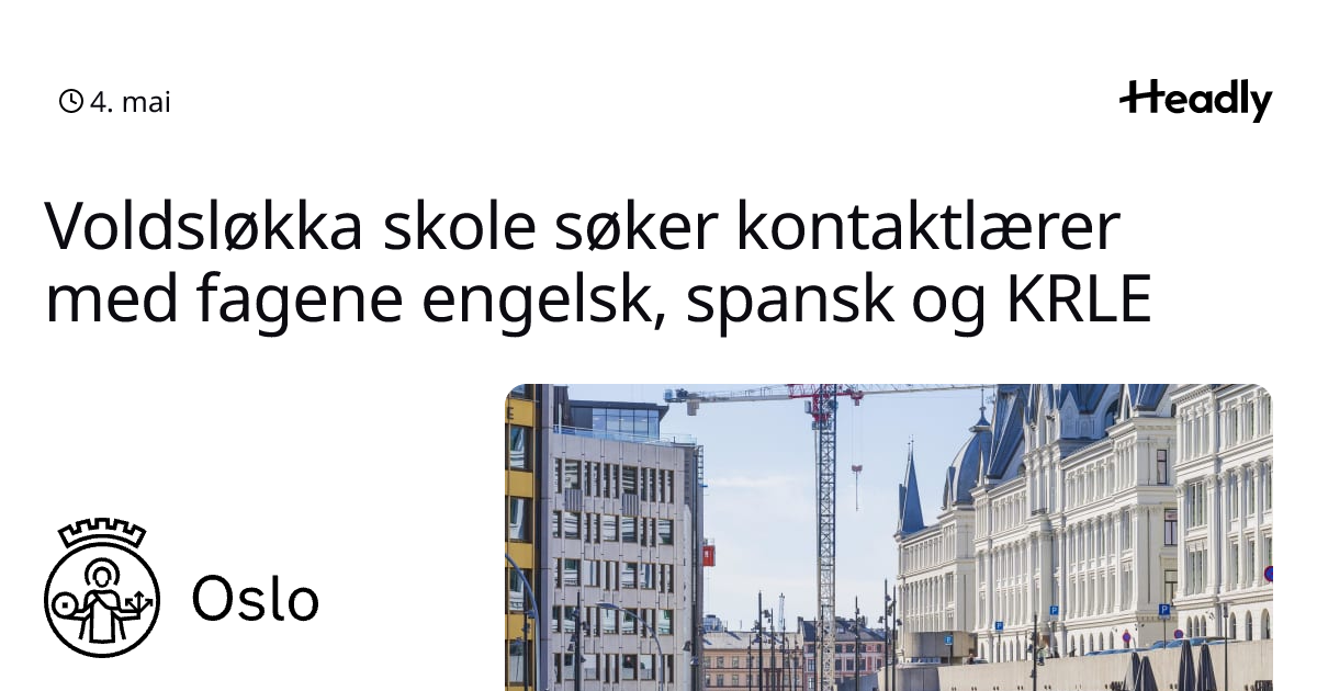Voldsløkka skole søker kontaktlærer med fagene engelsk, spansk og KRLE