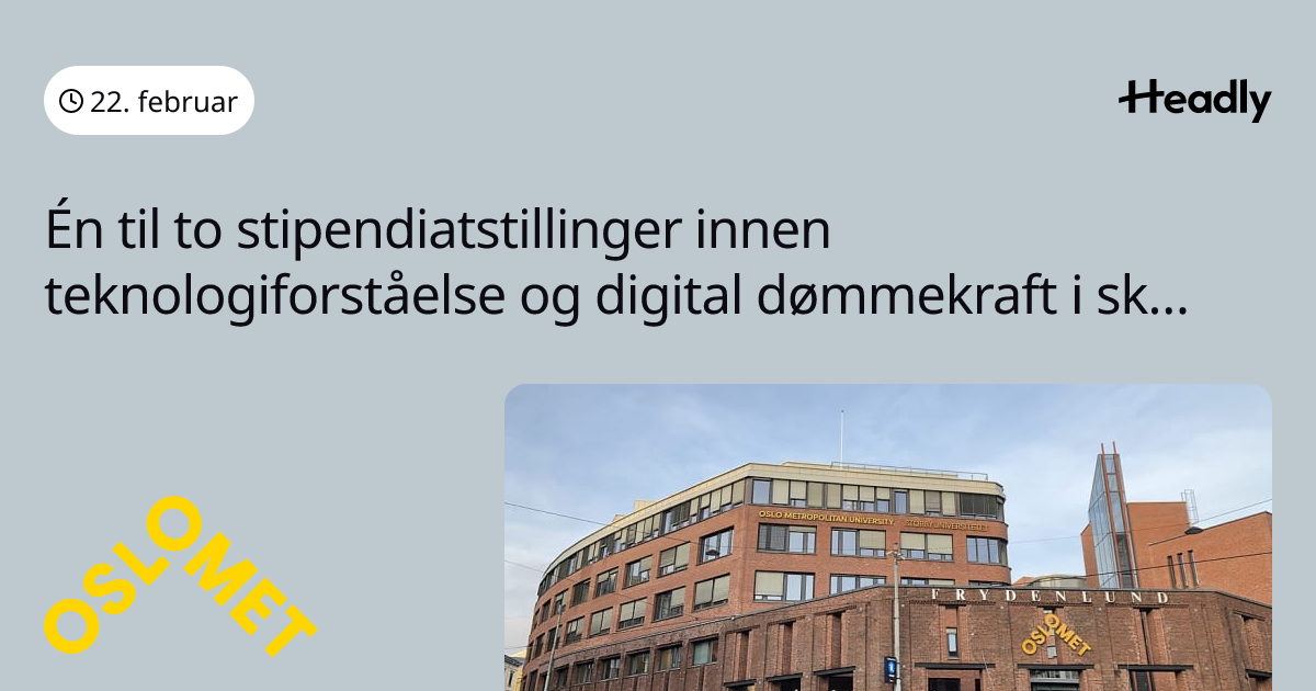 Én til to stipendiatstillinger innen teknologiforståelse og digital dømmekraft i skolen