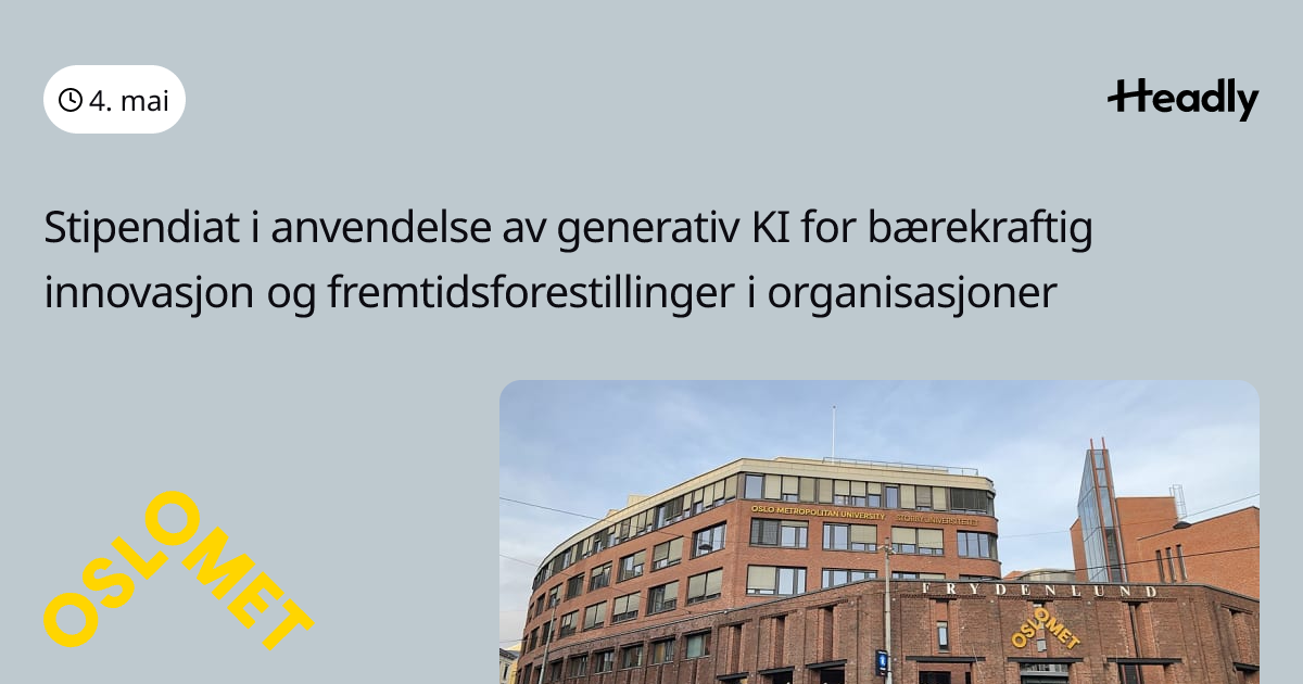 Stipendiat i anvendelse av generativ KI for bærekraftig innovasjon og fremtidsforestillinger i organisasjoner