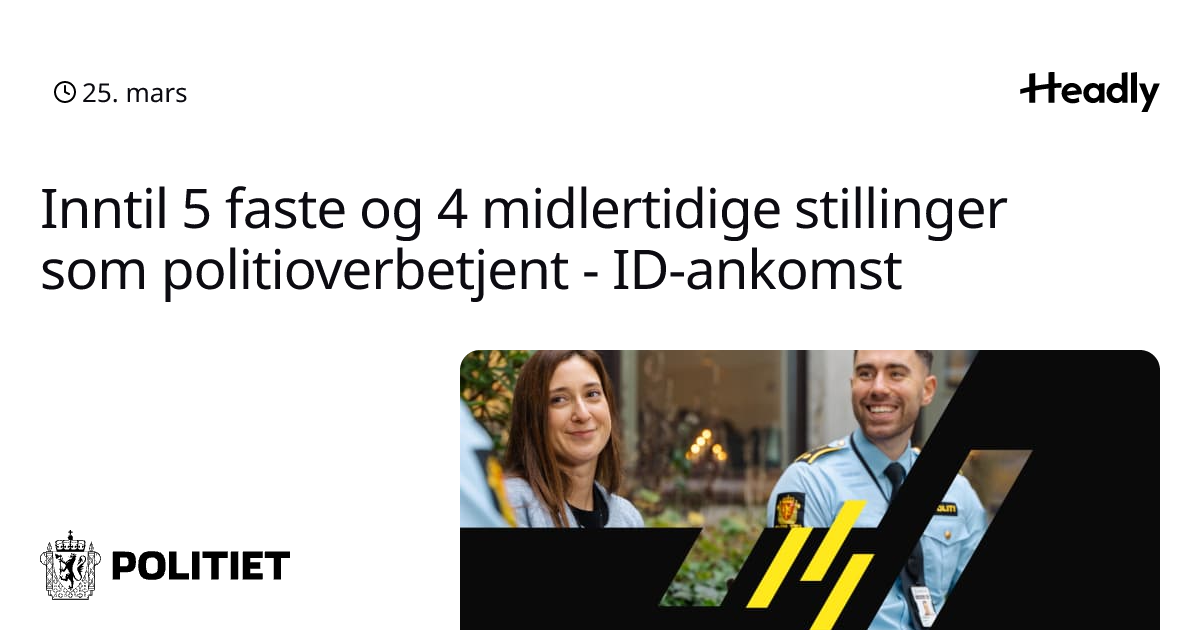 Inntil 5 faste og 4 midlertidige stillinger som politioverbetjent - ID-ankomst