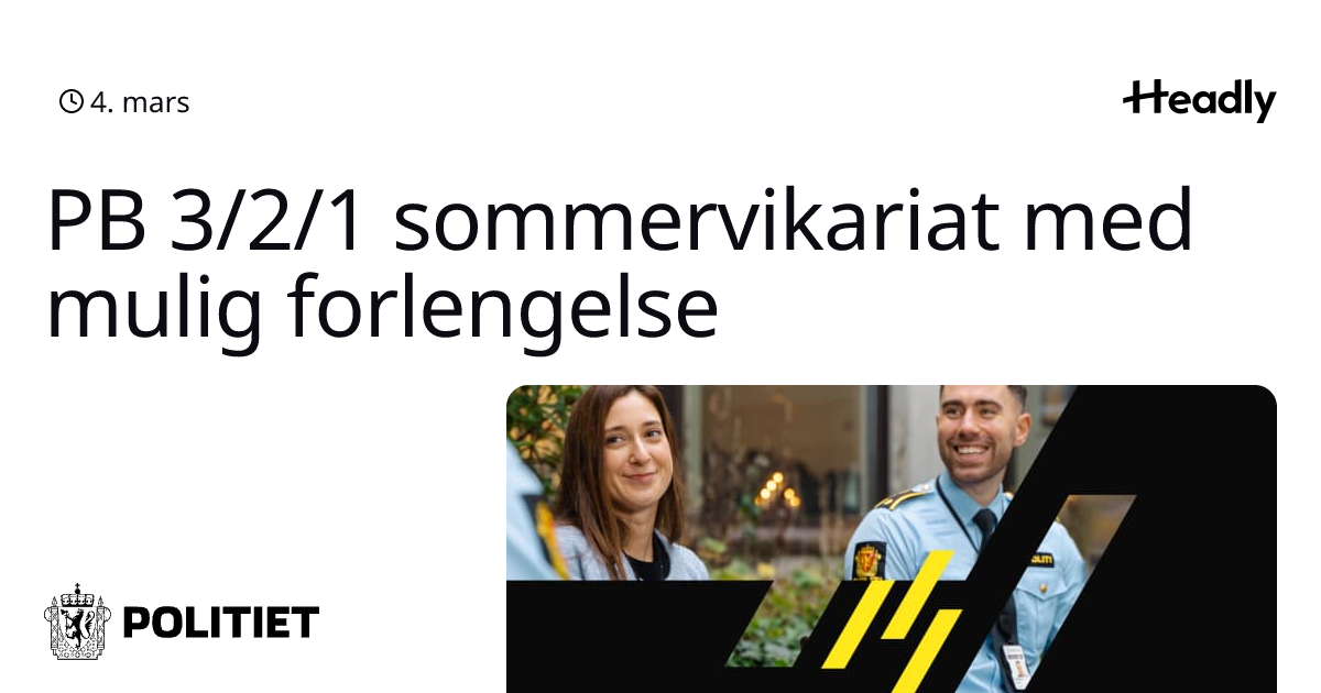 PB 3/2/1 sommervikariat med mulig forlengelse
