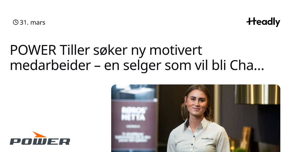 POWER Tiller søker ny motivert medarbeider – en selger som vil bli Champion