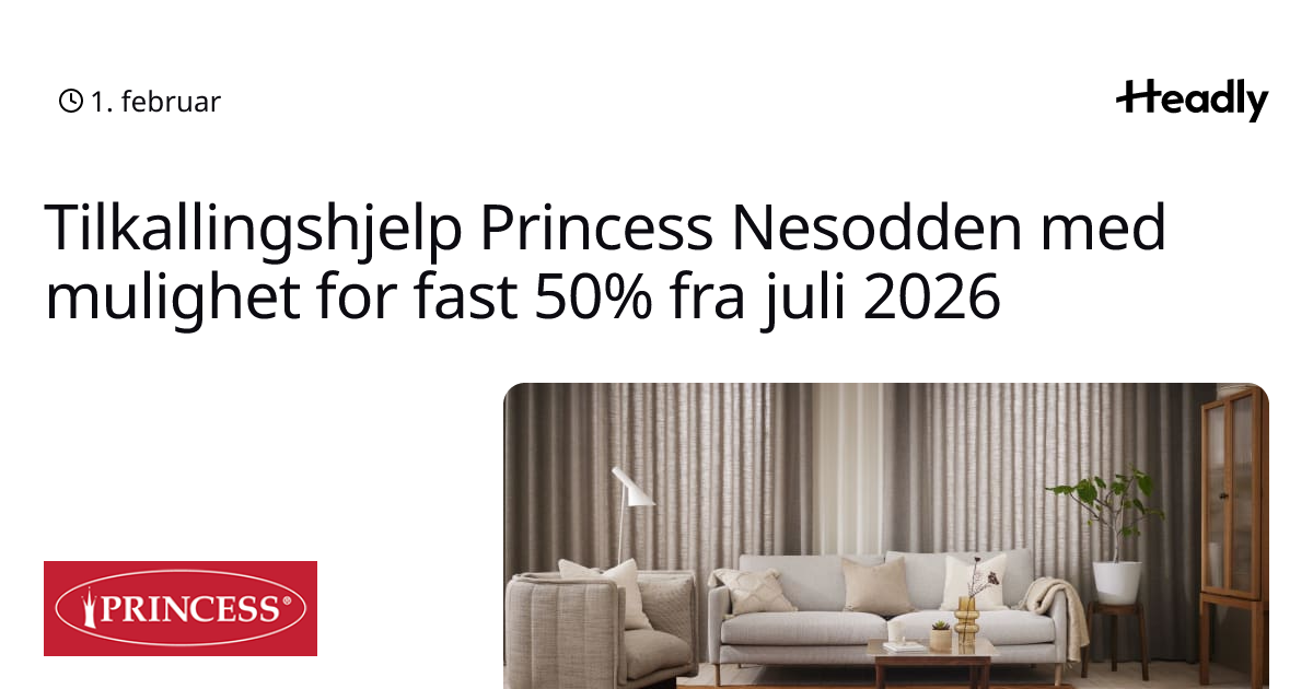Tilkallingshjelp Princess Nesodden med mulighet for fast 50% fra juli 2026