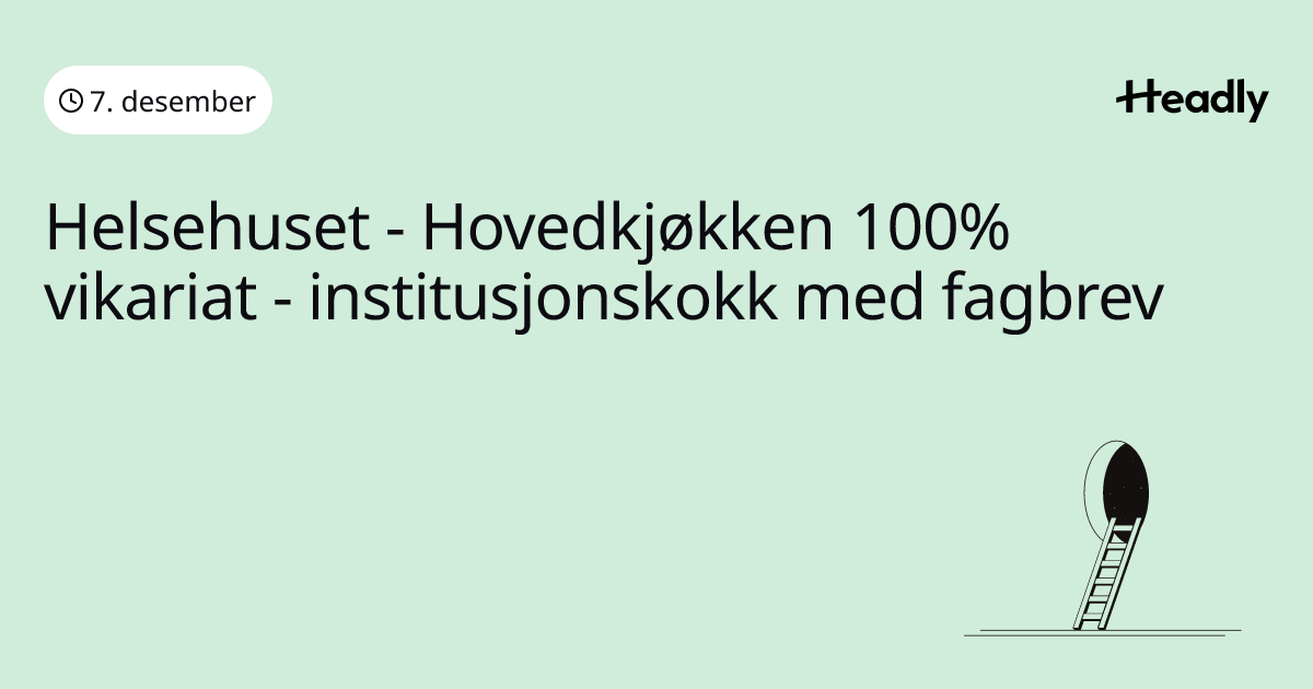 Helsehuset - Hovedkjøkken 100% vikariat - institusjonskokk med fagbrev