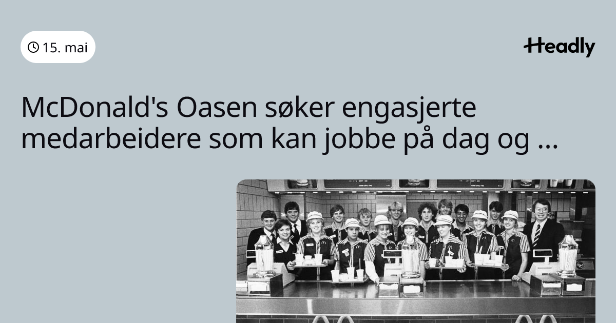 McDonald's Oasen søker engasjerte medarbeidere som kan jobbe på dag og kveld !