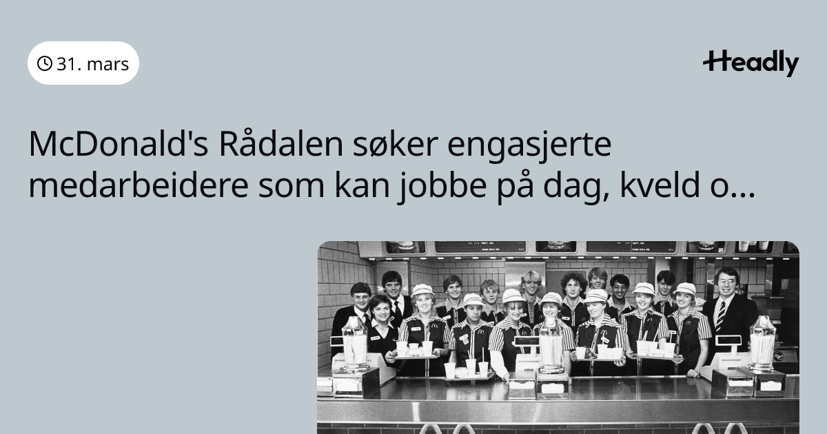 McDonald's Rådalen søker engasjerte medarbeidere som kan jobbe på dag, kveld og natt!