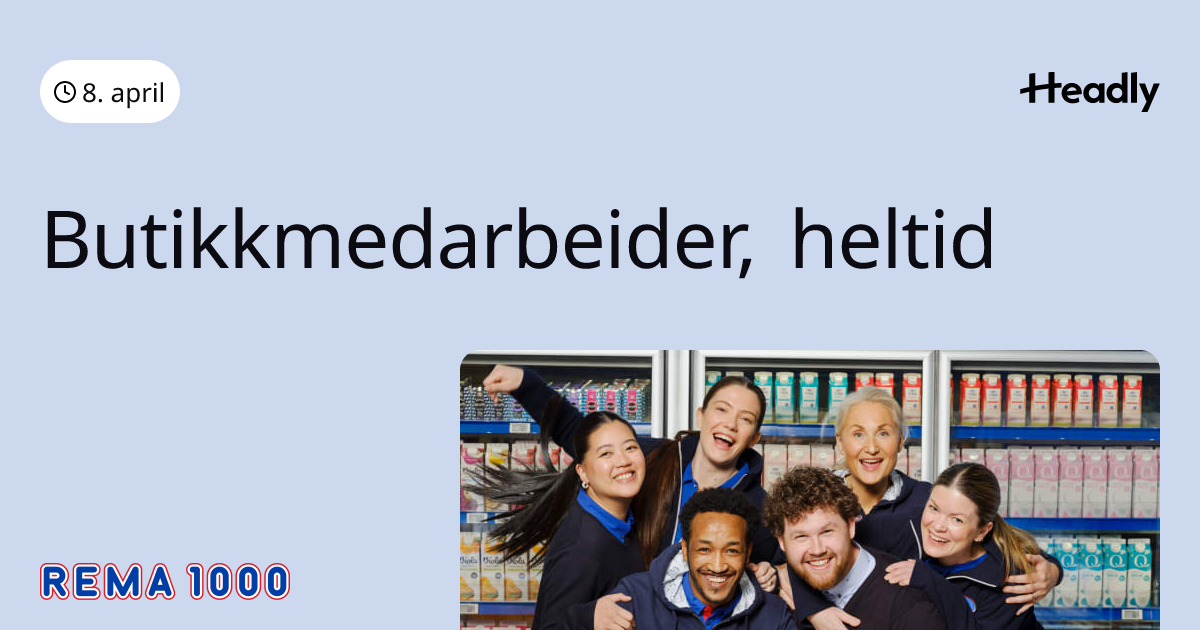 Vi søker Butikkmedarbeider over 18 år til heltidsstilling ved Rema 1000 Kuven Stasjon