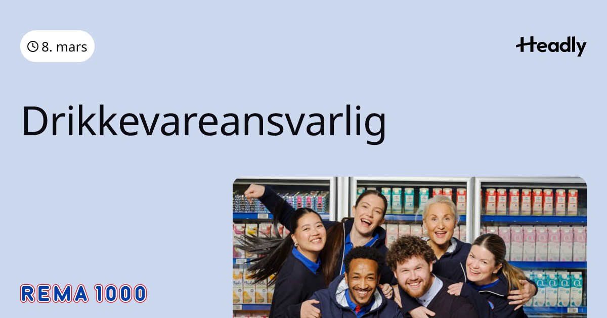 REMA 1000 SANDNESSJØEN søker drikkevareansvarlig i 80% stilling med mulighet for mer.