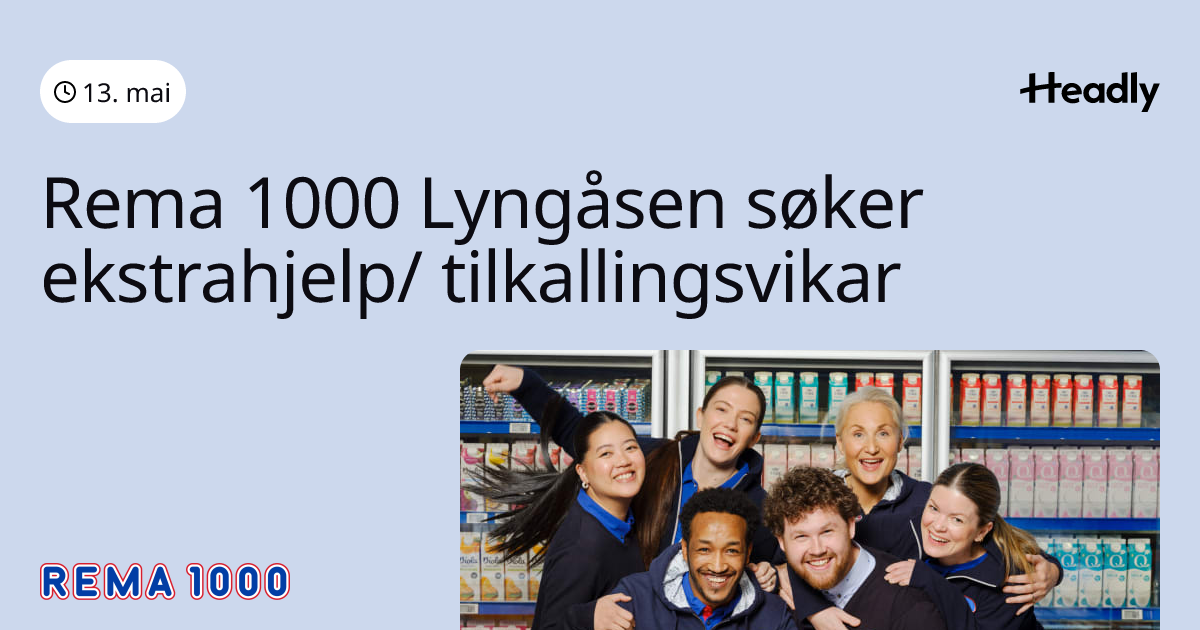 Rema 1000 Lyngåsen søker ekstrahjelp/ tilkallingsvikar