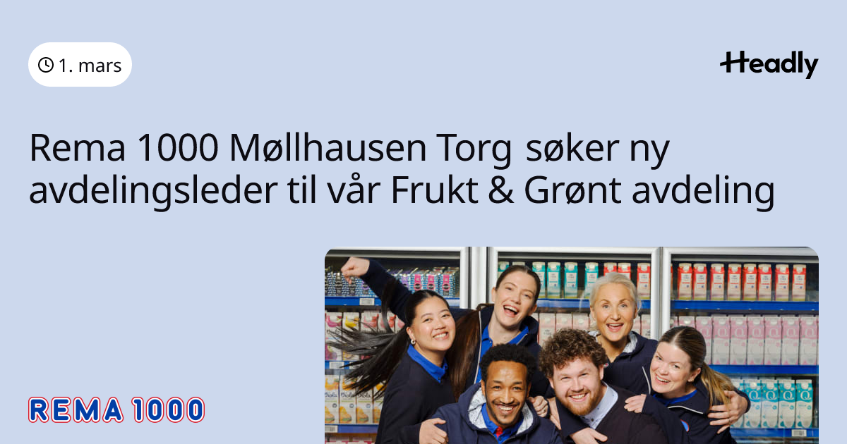 Rema 1000 Møllhausen Torg søker ny avdelingsleder til vår Frukt & Grønt avdeling