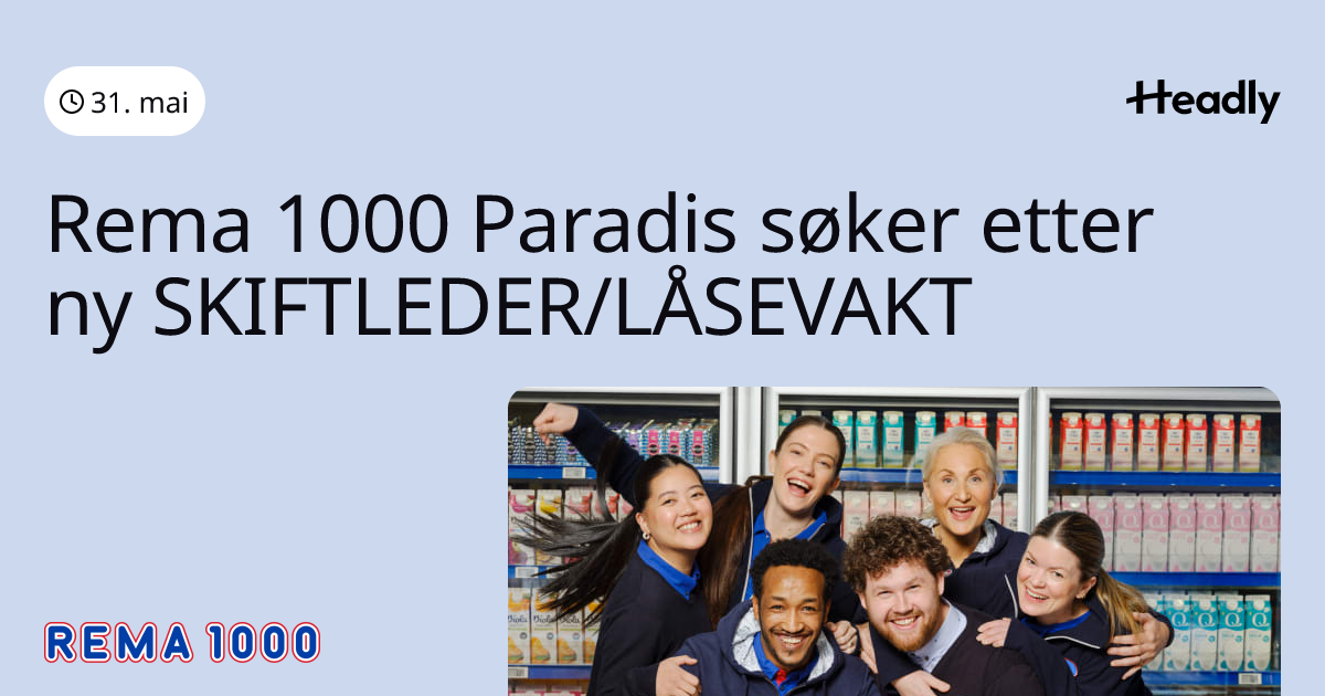 Rema 1000 Paradis søker etter ny SKIFTLEDER/LÅSEVAKT
