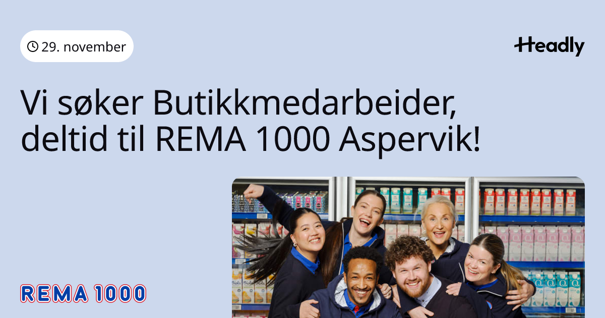 Vi søker Butikkmedarbeider, deltid til REMA 1000 Aspervik!